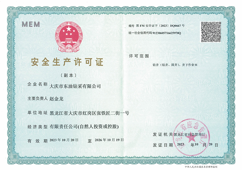 大慶東油鉆井企業(yè)資質(zhì)證書