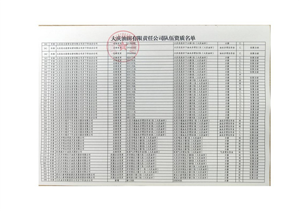 大慶東油15001隊(duì)(大慶油田)資質(zhì)證書