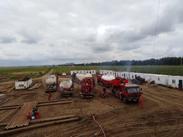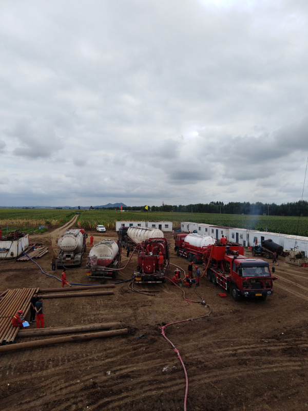 大慶東油鉆采有限公司固井隊于2018年8月5日進(jìn)行固井施工。注灰,低密度60方,原漿18方。替泥漿34.2方,水泥漿返出地面,施工**順利,一切正常。