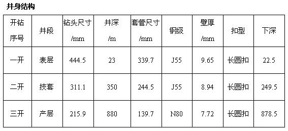 該井由七臺河地質(zhì)隊承鉆,完鉆井深880。固井施工由大慶市東油鉆采有限公司承擔(dān),注灰27方,替清水10.5方,施工正常。