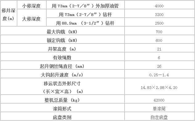 2、XJ700(40噸)無繃?yán)K修井機(jī)